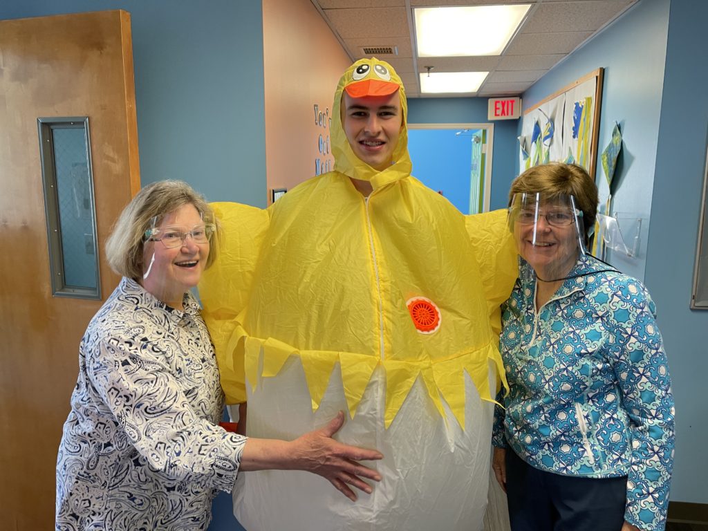 Little Footprints Learning Center is the proud parent of six fertilized chicken eggs. They are warm and safe in our school incubator that has been placed in the school office. A chart has been placed in the school hallway so we can count down the days until they hatch! It takes twenty one days for them to incubate and we have thirteen more to go! Mrs. Dolbier dressed as a farmer and read a book to the school entitled, “A Chicken’s Life” and then we watched a short YouTube video about chickens. Micah the Chick made a surprise appearance to the delight of all!! Now that we know all about chicks, we can’t wait to have them hatch, name them, take care of them and watch them grow!!!!